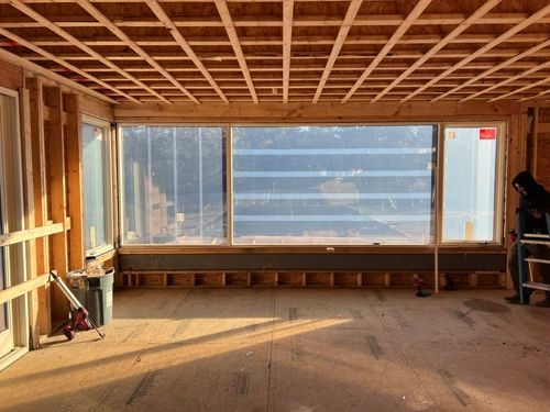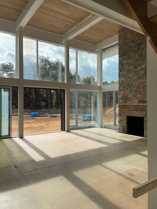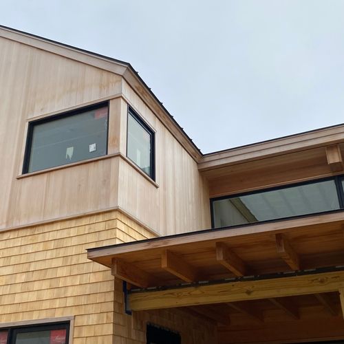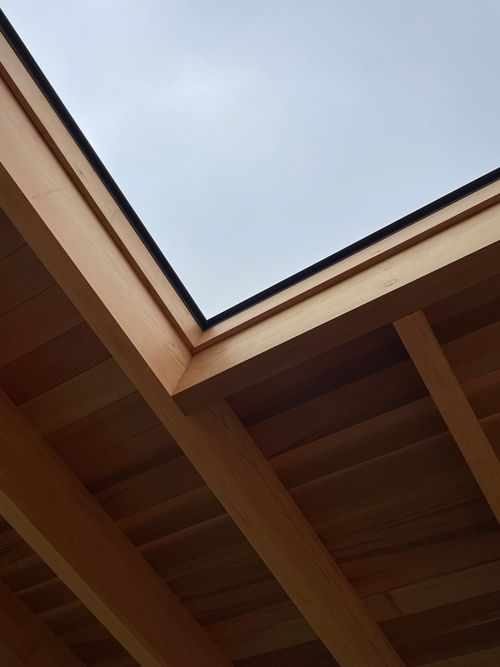 Located in Edgartown’s desirable Katama neighborhood, this site is nestled within an indigenous pitch pine forest just a short walk to Katama Bay. Having vacationed on Martha's Vineyard for many years, the owners commissioned us to create a second home for them to escape the city and enjoy the Island's peaceful countryside. Avid outdoors people, they were drawn to the wooded site and wanted the home to embrace the land, blurring the line between inside and out. The low and transparent entry porch leads to a large two-story glass living room that frames the beautiful landscape beyond. The home has five bedrooms, one for each family member, and features a library mezzanine overlooking the family room below.